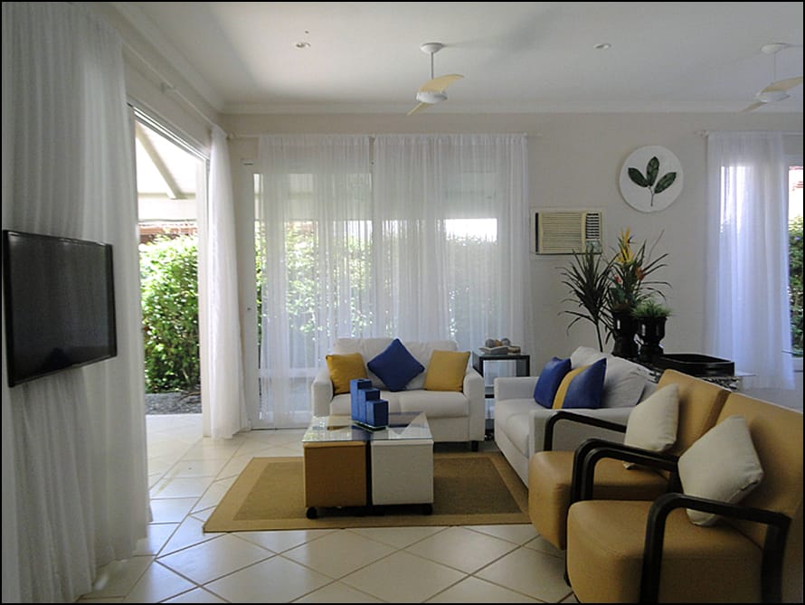- Salas de jantar e TV integradas com ar condicionado e ventiladores de teto