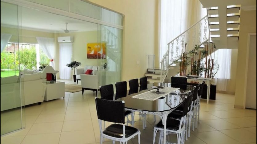 - Sala de jantar com ar condicionado split e ventiladores de teto