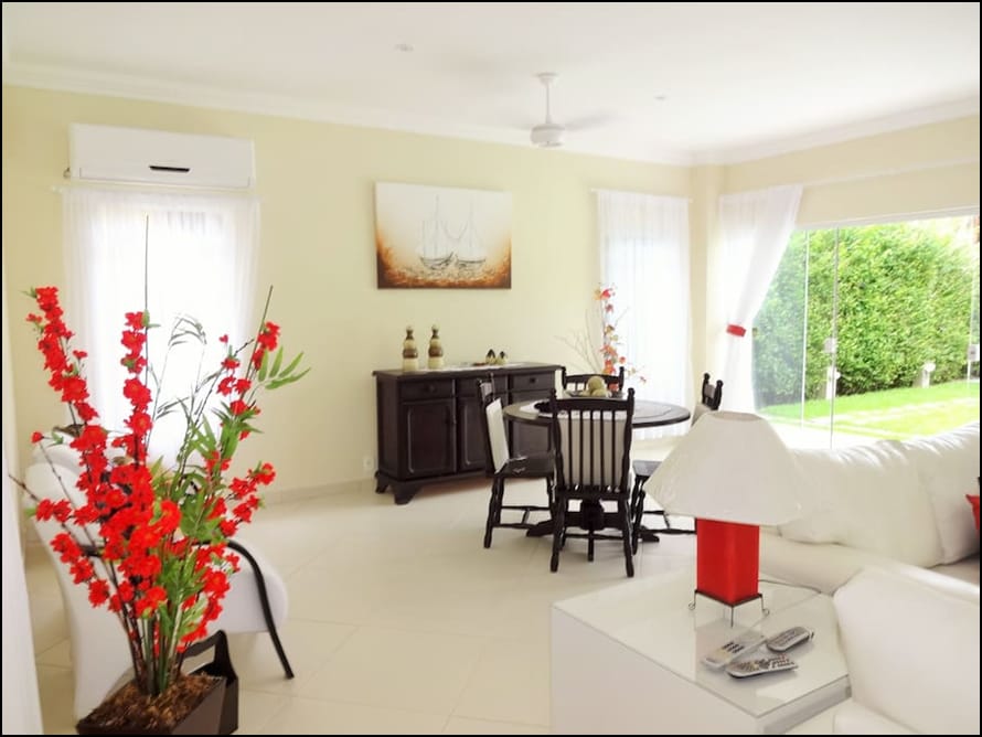 - Sala de estar com ar condicionado split e ventiladores de teto