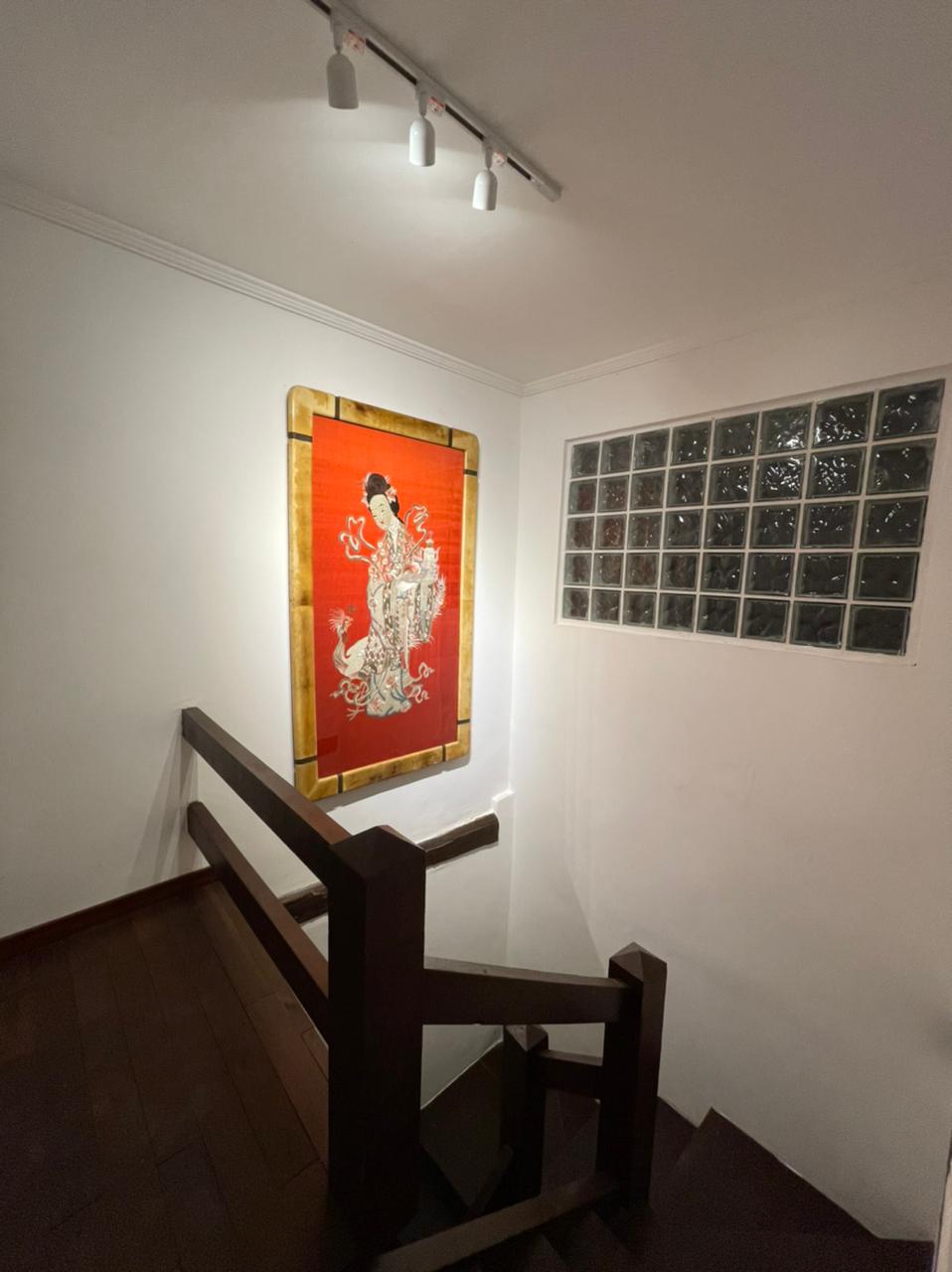- Salão com madeiramento de qualidade com pé direito alto dividido em 3 ambientes estar, Jantar e TV, lareira