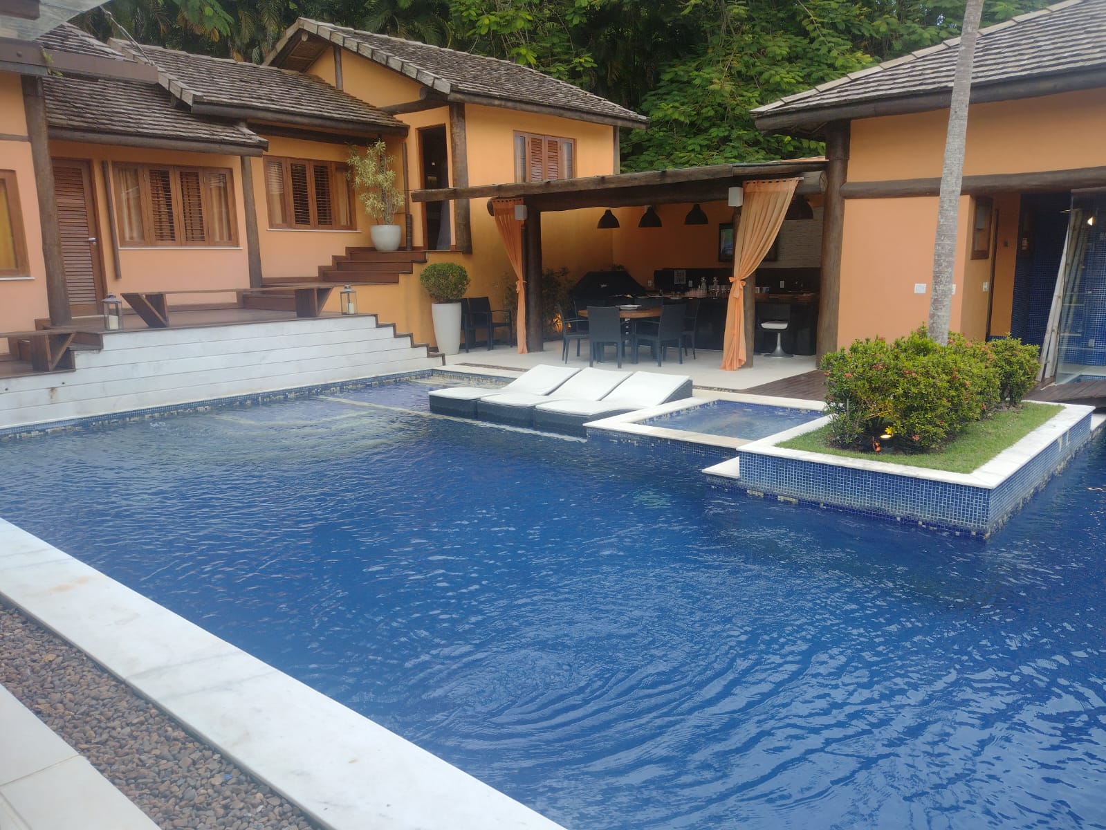 Linda casa em dois pavimentos, com 03 bangalôs charmosos, área de lazer bem integrada, toda bem decorada. Fica próxima a balsa, só atravessar o canal e já estará na praia e Boulevard Fasano.