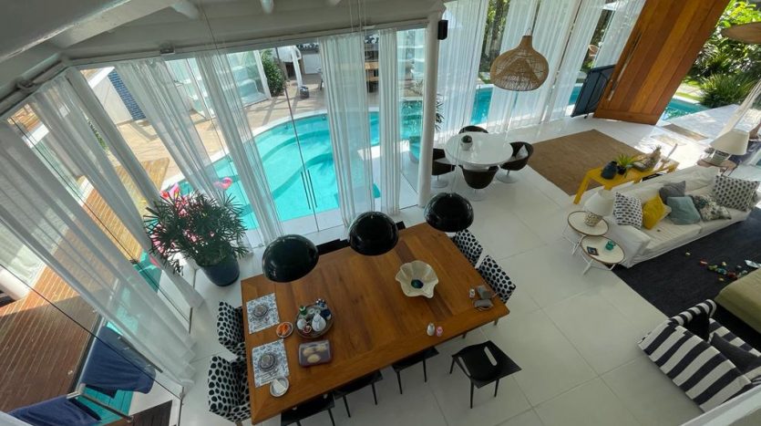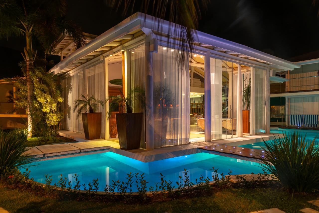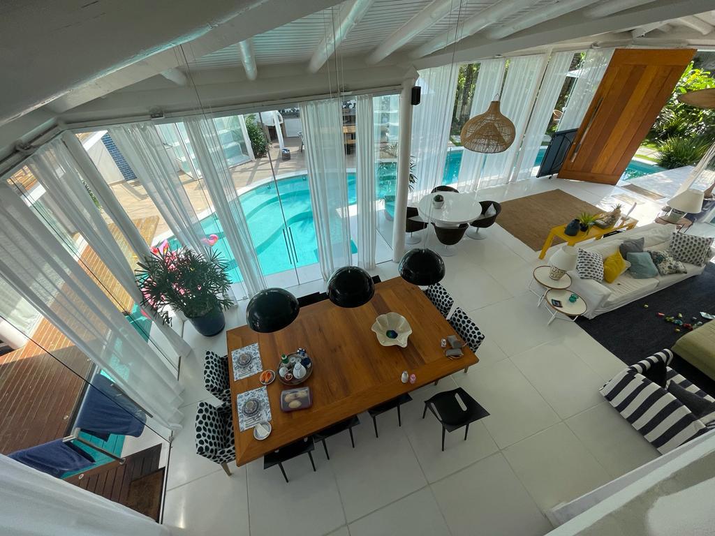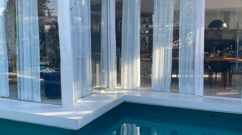 Arquitetura diferenciada onde podemos destacar pé direito alto, muita luz natural, uma piscina envolvendo o imóvel com suas passarelas de acesso, um lindo jardim tudo com muito bom gosto, requinte e sofisticação.