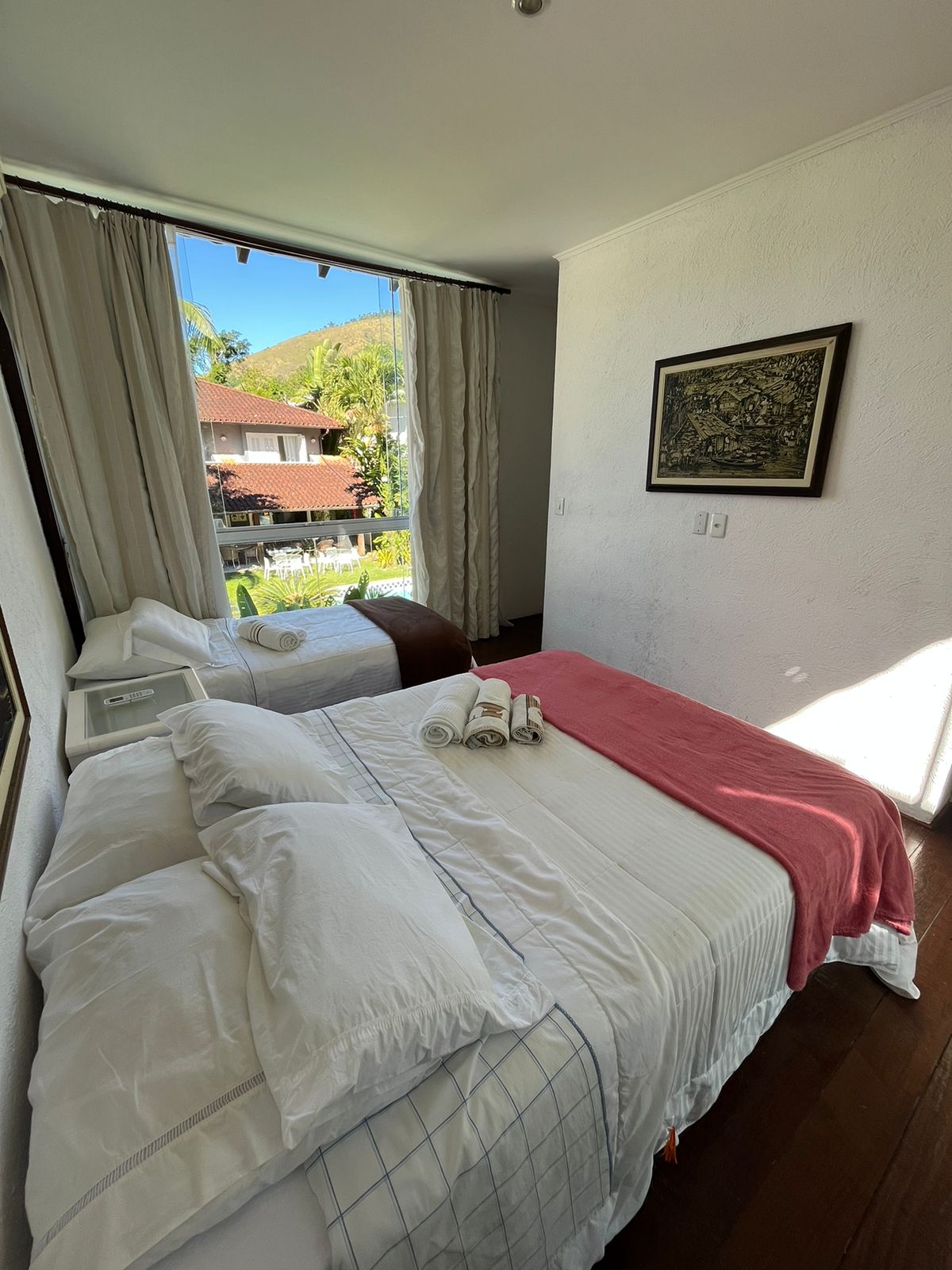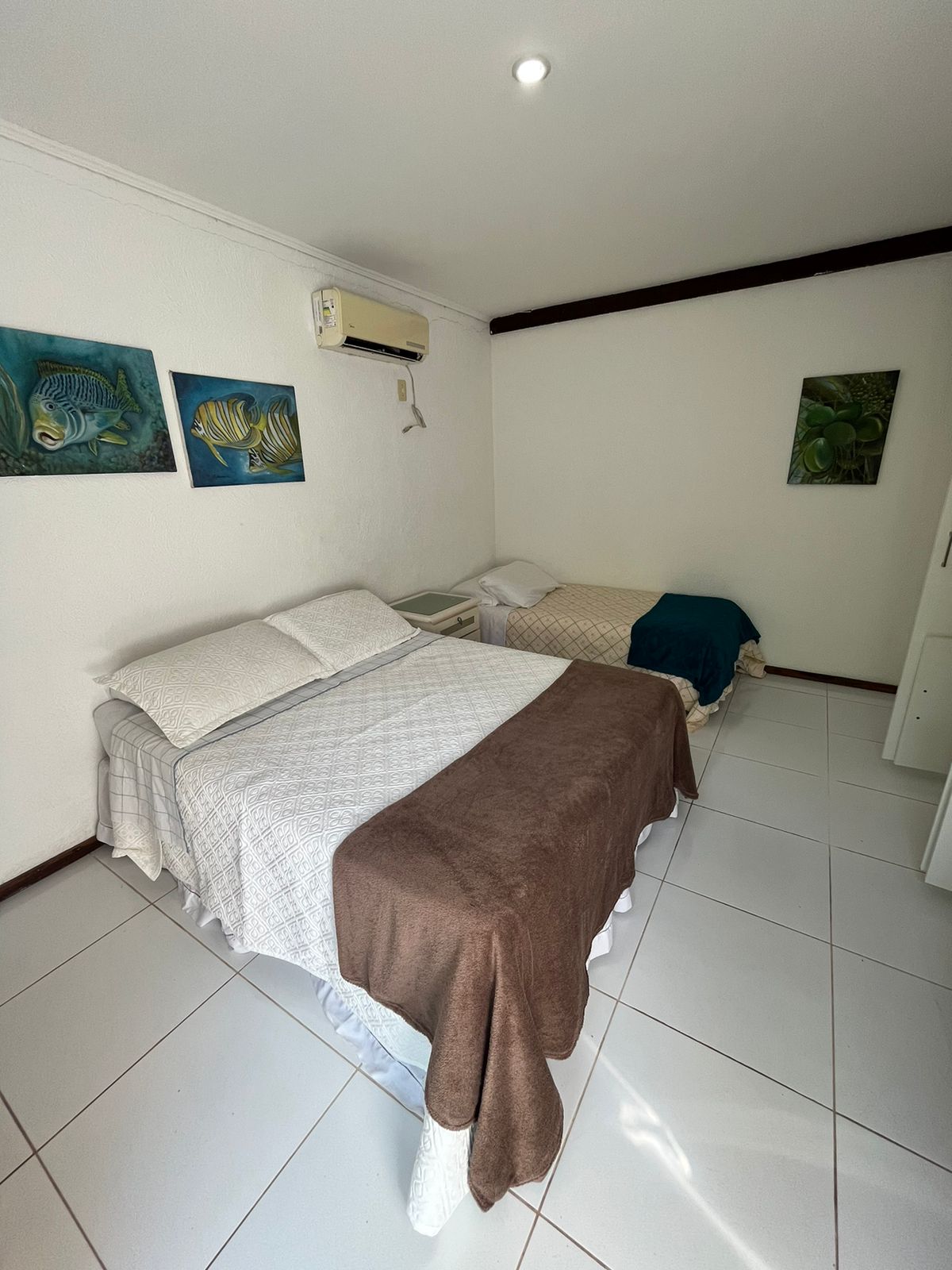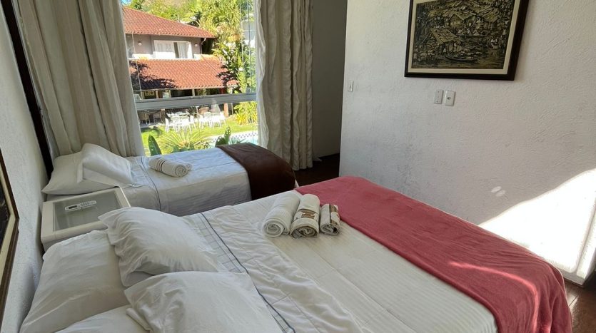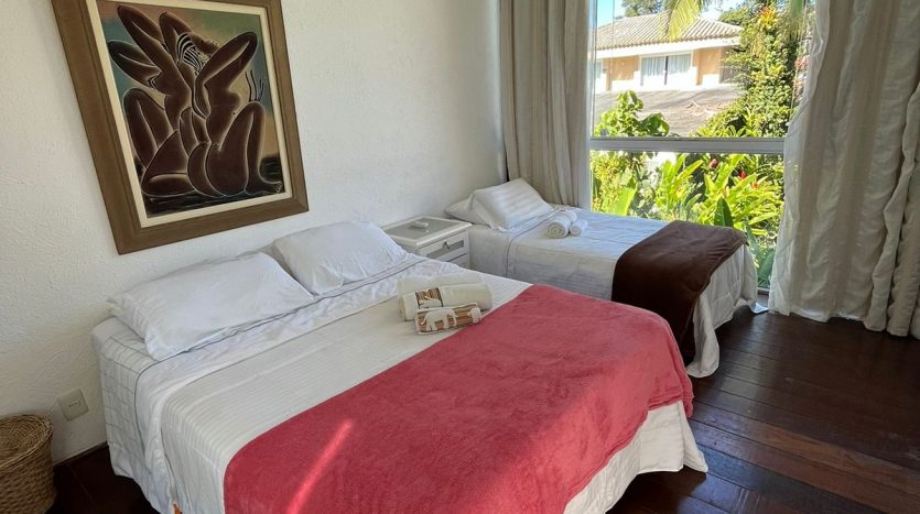 Apto em Sub – Condomínio com Suíte master com cama de casal e um quarto que contém duas camas de solt. [mais]