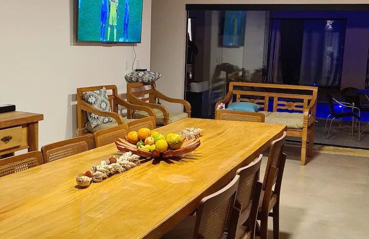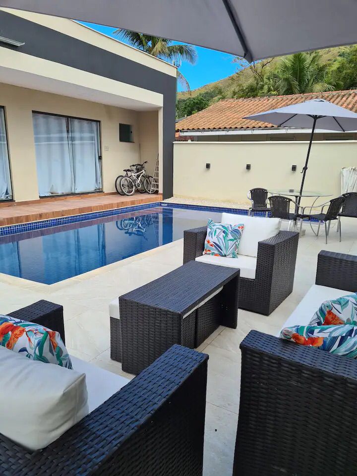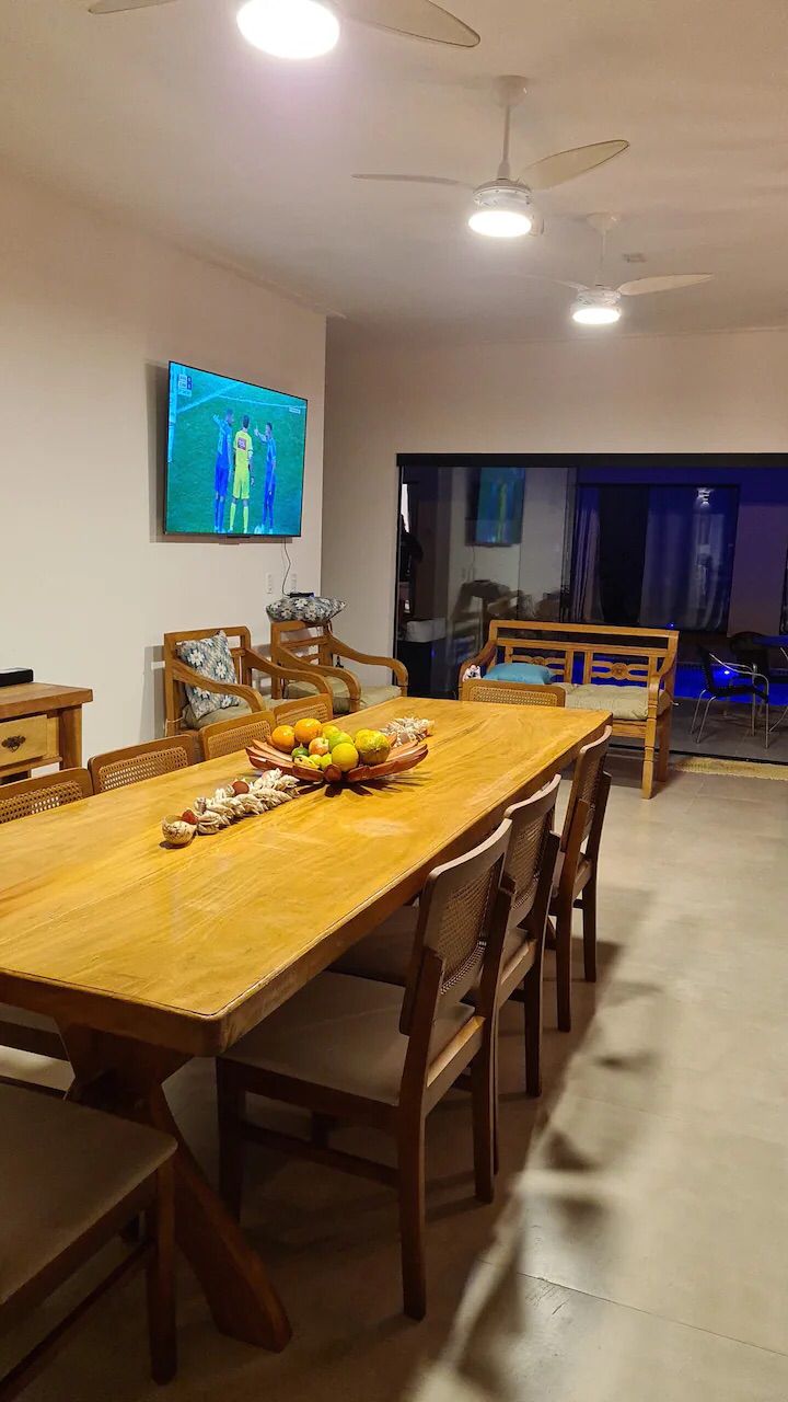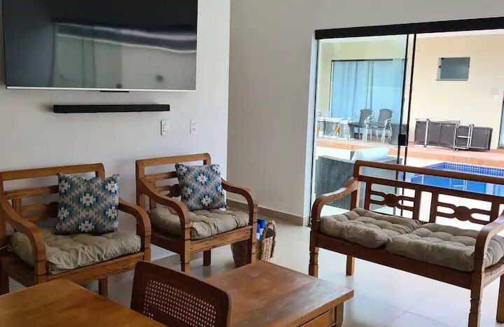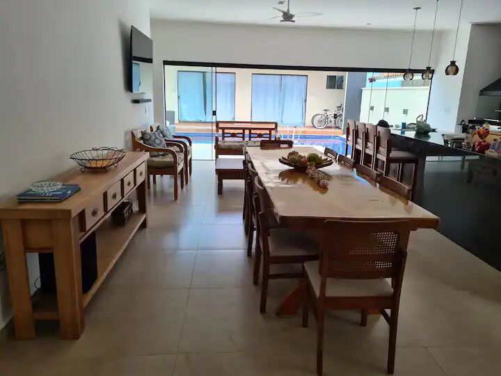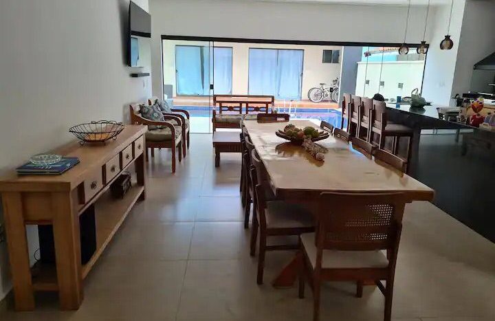 DESCRITIVO: 05 suítes em dois pavimentos Piscina Ar condicionado Geladeira Fogão TVs TV a cabo Wi-Fi Churrasqueira [mais]