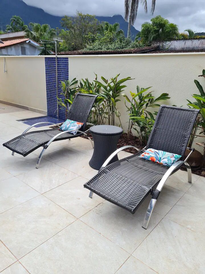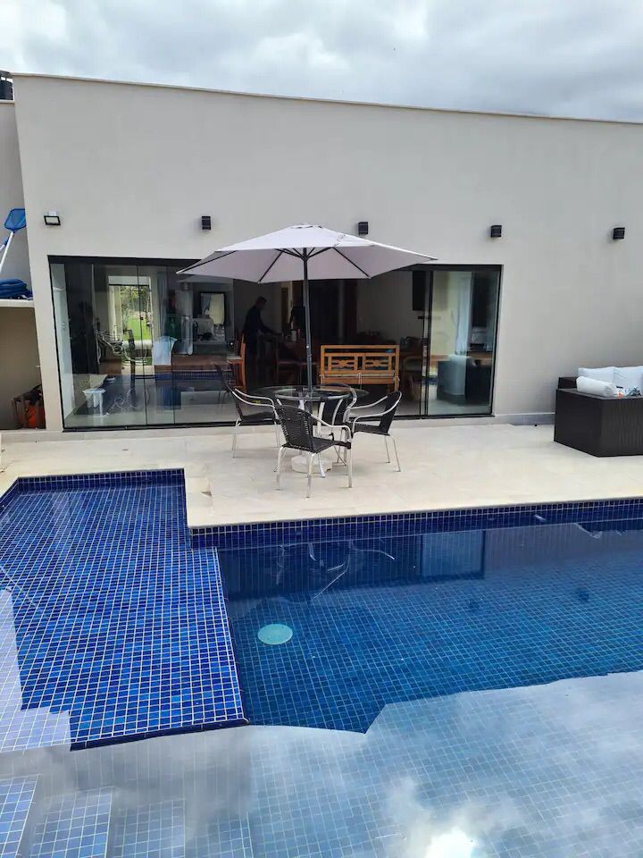 Casa localizada em rua tranquila. Casa contém dois quartos auxiliares no jardim. Sala e Cozinha ampla com vista para a piscina; Área de lavar; Lavabo e dispensa; E piscina aquecida.