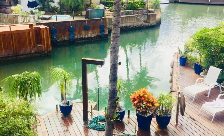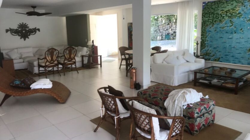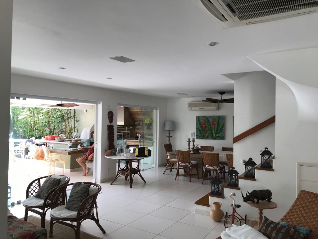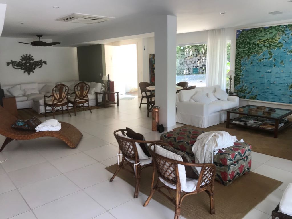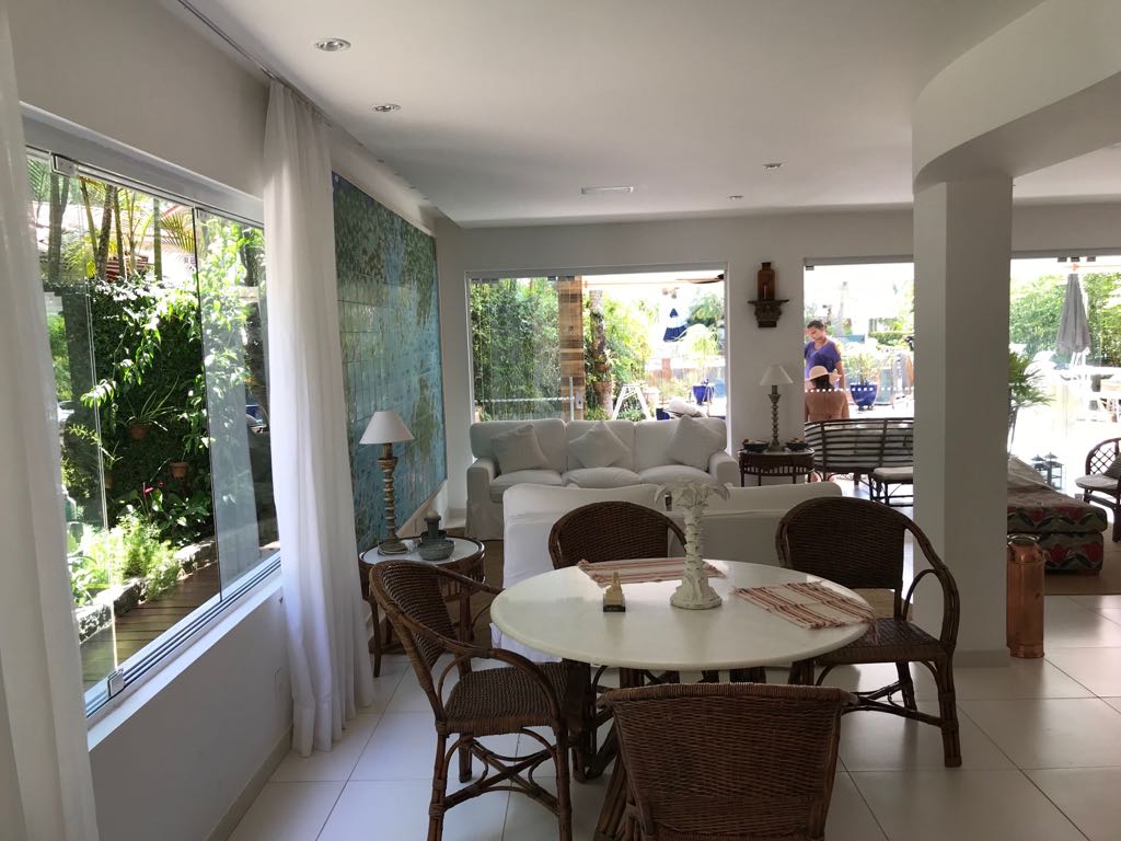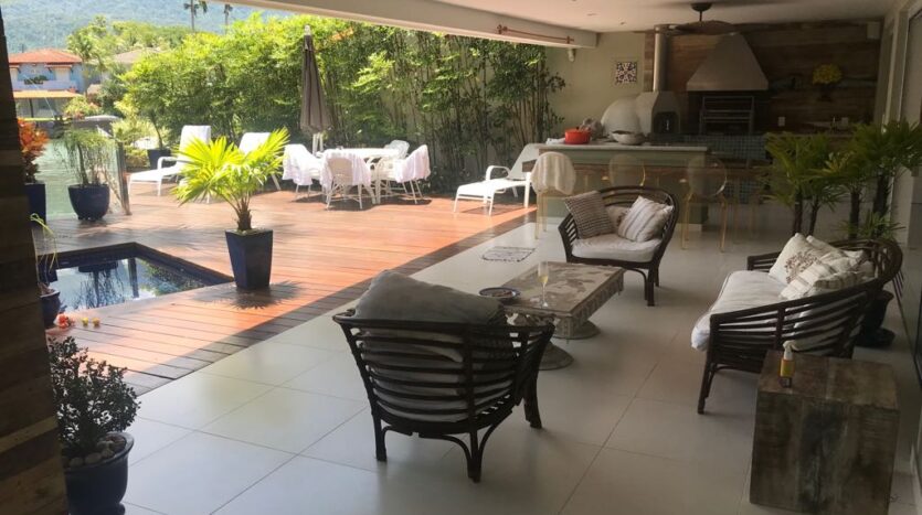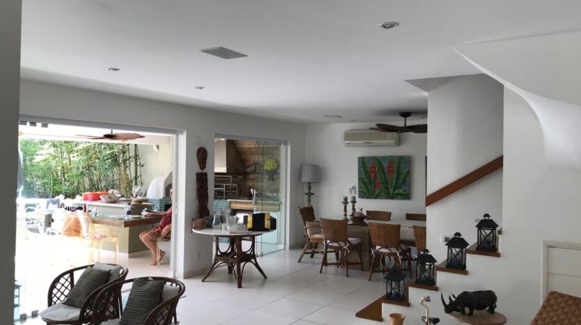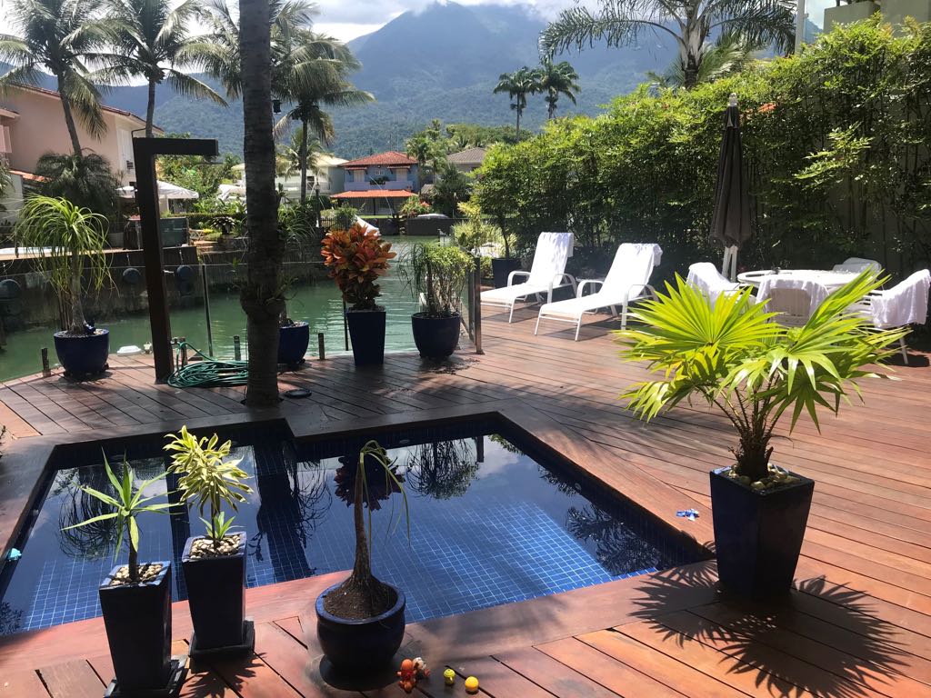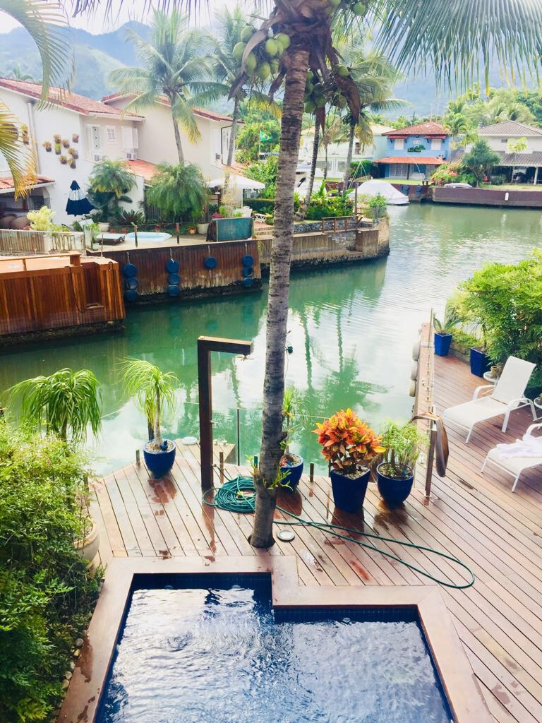 Casa moderna em dois pavimentos localizada no principal canal do condomínio Porto Frade. Sala de TV e jantar integradas, área gourmet completa com vista para piscina e canal.