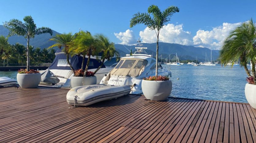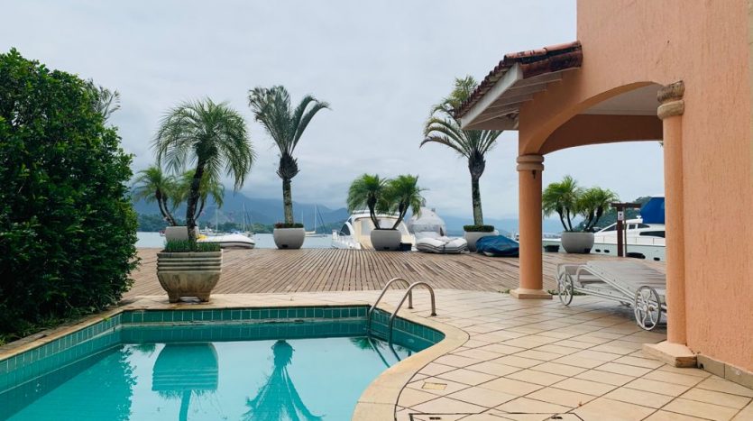 Imóvel com linda vista do mar muito bem decorado localizado em maravilhoso condomínio a beira mar, no melhor canal do condomínio, emoldurado por imaculado jardim, sofisticadamente planejado para ancorar barcos de até 120′ sobre as águas cristalinas da Baia de Angra dos Reis.