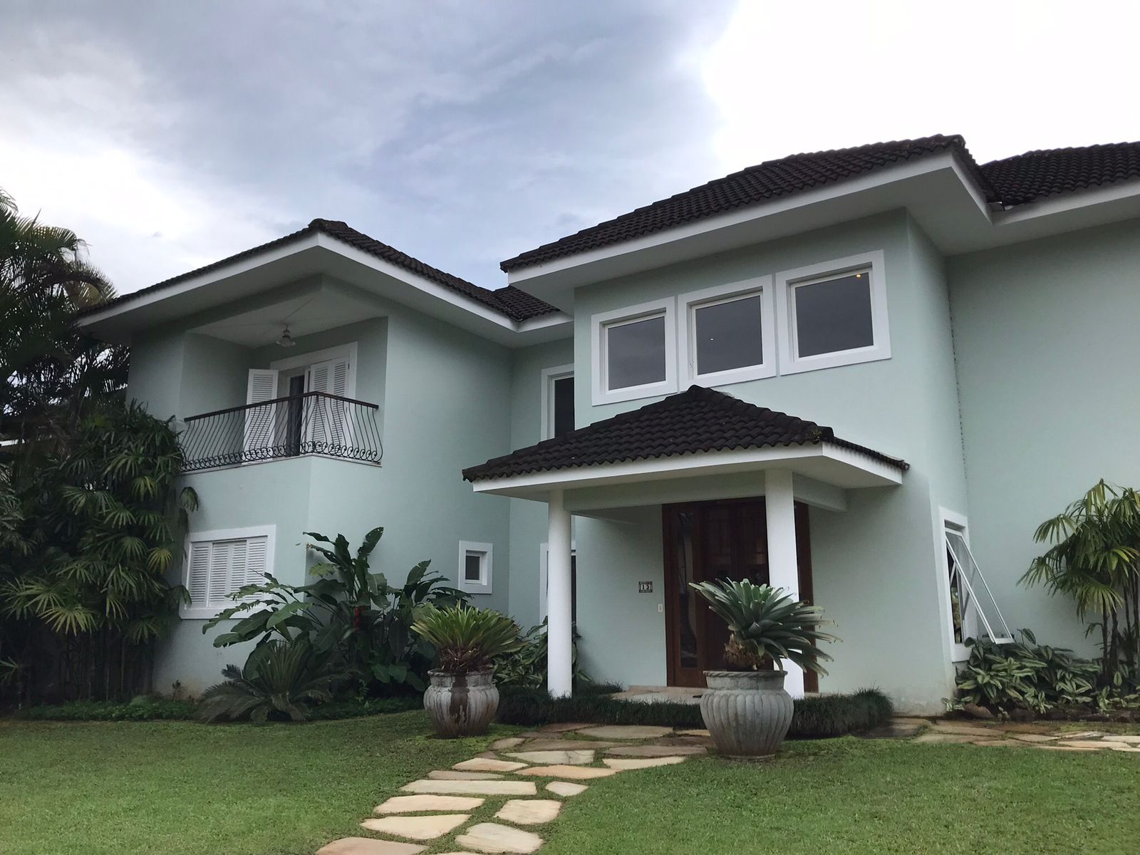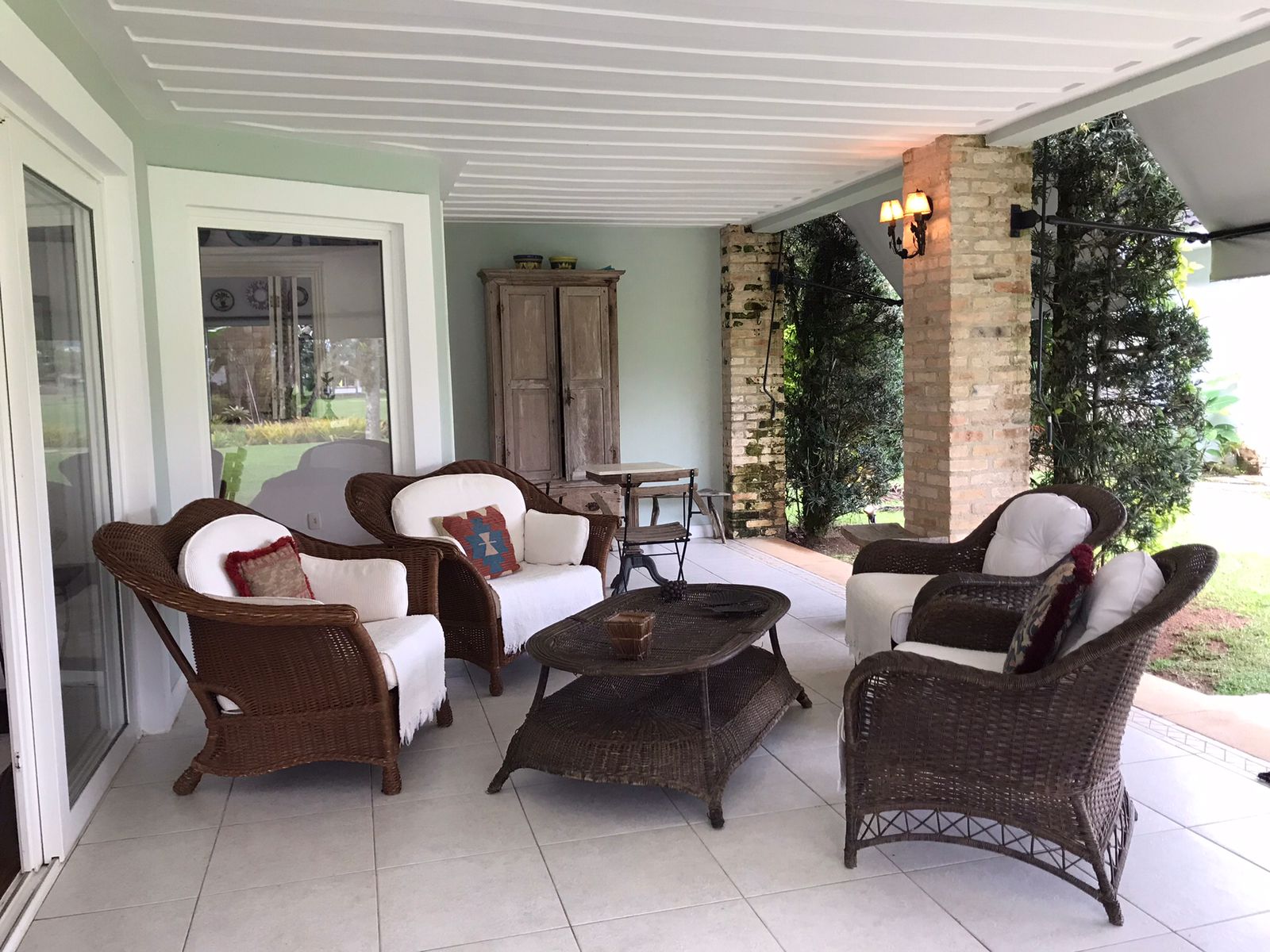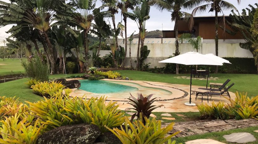 Casa Localizada próximo ao campo de golf, todos os quartos com sacada para o jardim e vista para a paz do campo de golf, Sala ampla com ambientes integrados (Jantar e estar), Área de lavar, Varanda para o jardim e mesa (seis assentos e quatro poltronas, Lavabo e dispensa; contamos também com sala de jogos com um freezer integrando a área gourmet com vista para a piscina.