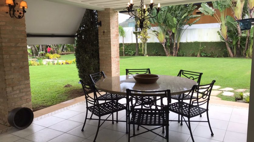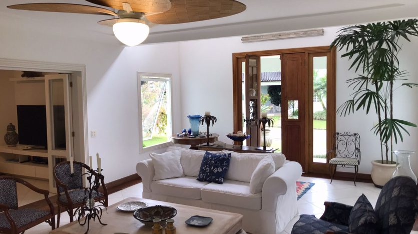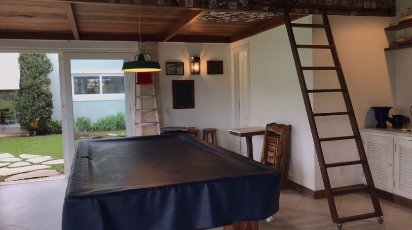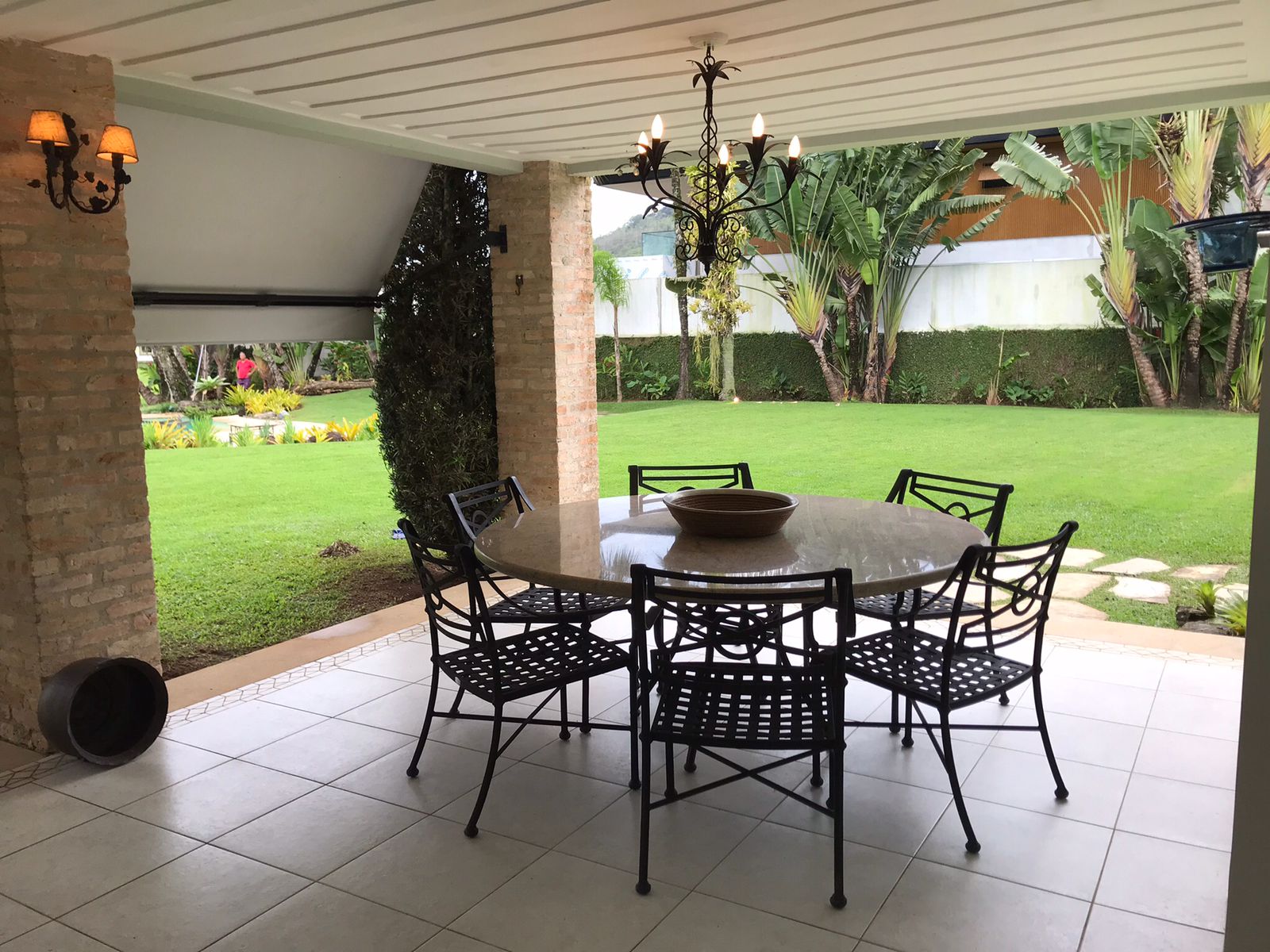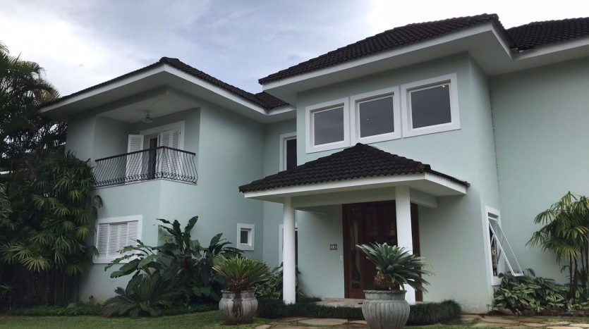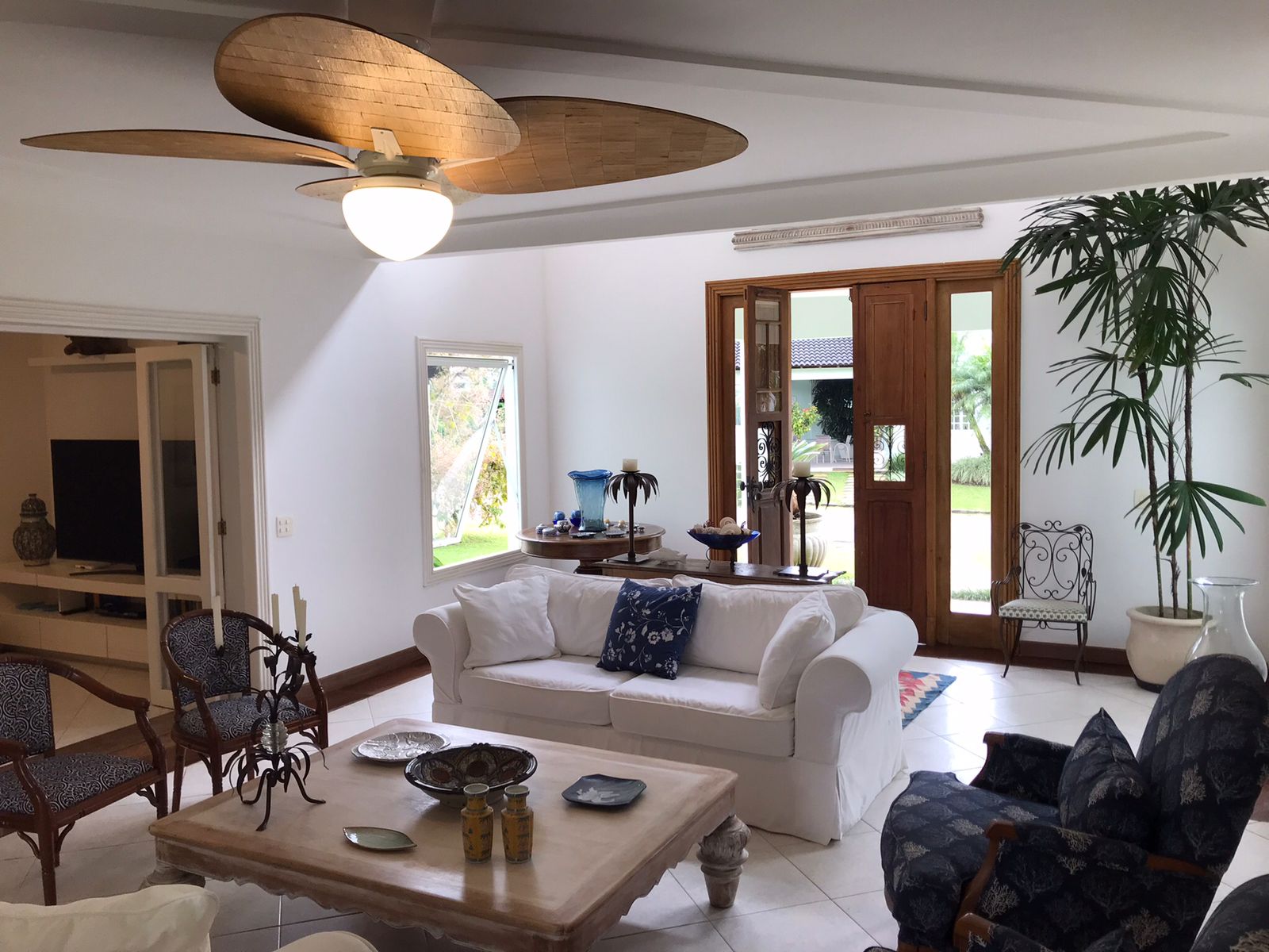 Casa Localizada próximo ao campo de golf, todos os quartos com sacada para o jardim e vista para a paz do campo de golf, Sala ampla com ambientes integrados (Jantar e estar), Área de lavar, Varanda para o jardim e mesa (seis assentos e quatro poltronas, Lavabo e dispensa; contamos também com sala de jogos com um freezer integrando a área gourmet com vista para a piscina.