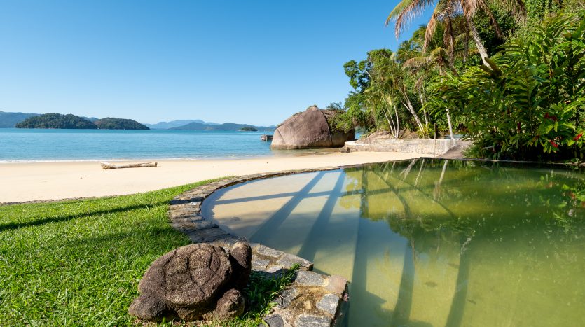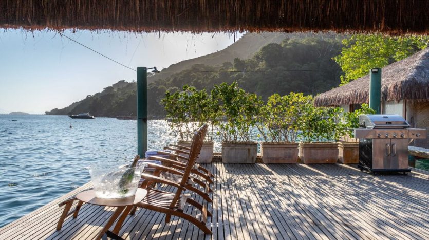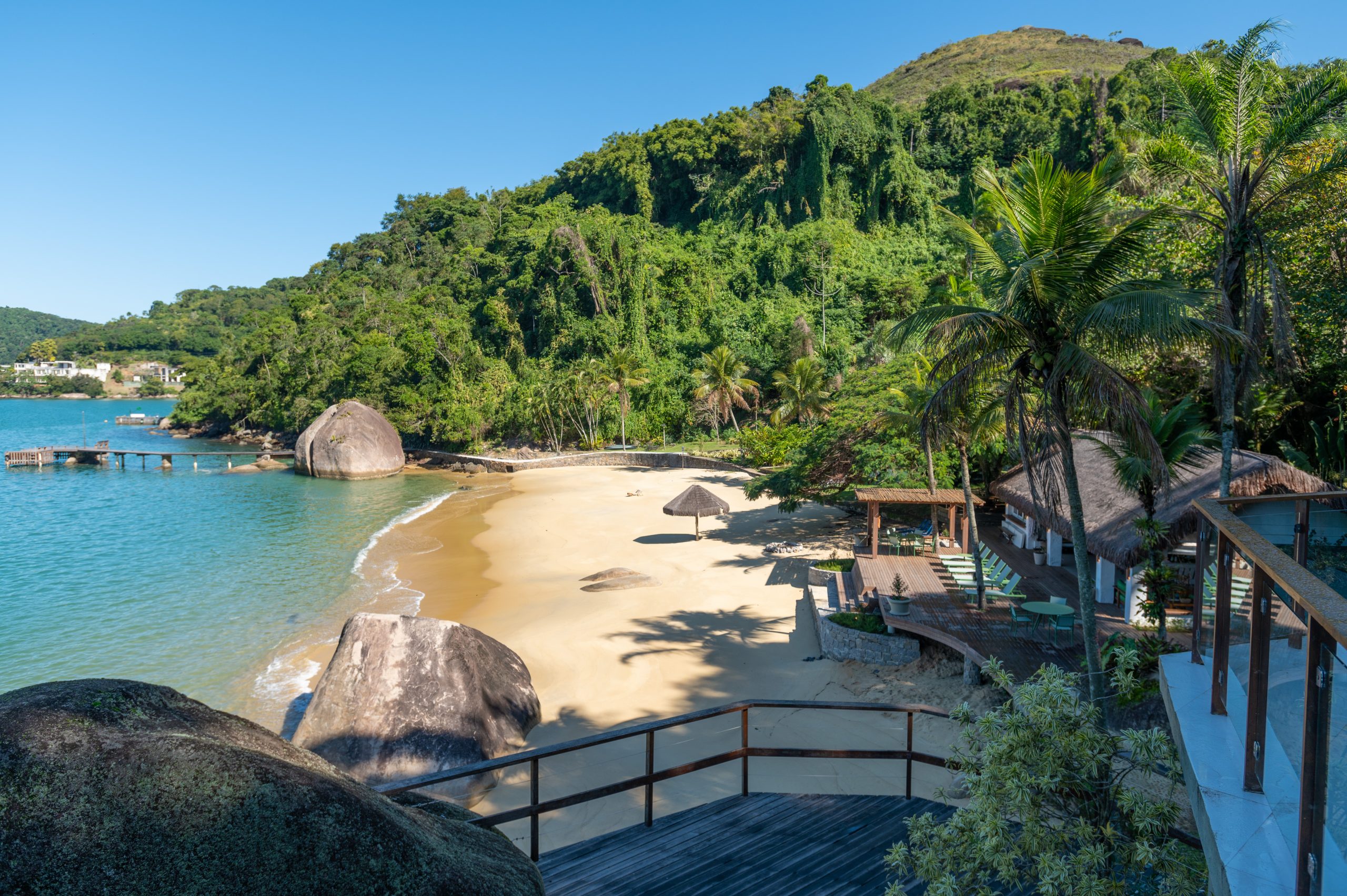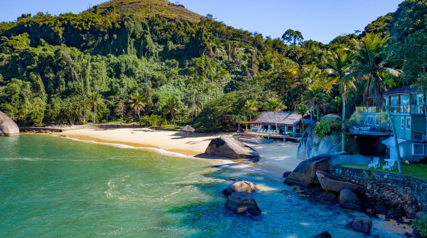 Distribuído em duas casas, sendo uma casa com 08 suítes e outra com 04 suítes, ambas com decoração clean, em perfeita harmonia com a natureza que é parte integrante de todos os cômodos do imóvel. Um imóvel único, com praia particular, píer privativo, sauna, piscina, espaçosas salas de estar e jantar, cozinha completa e amplas varandas.