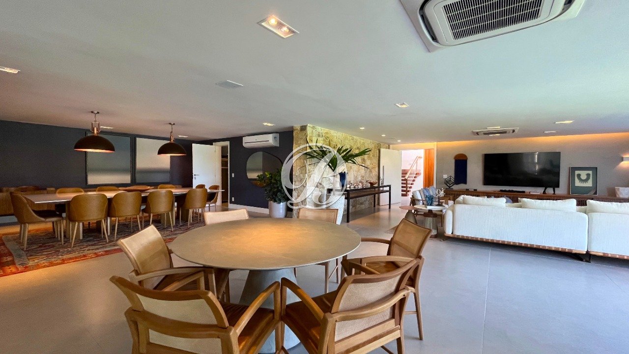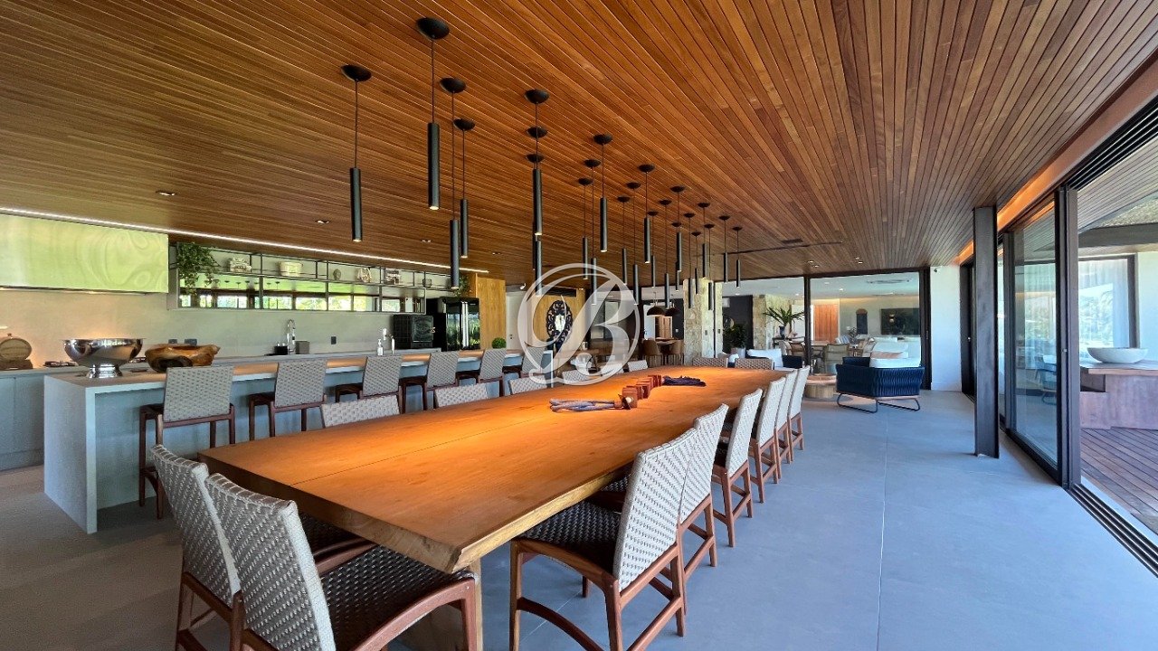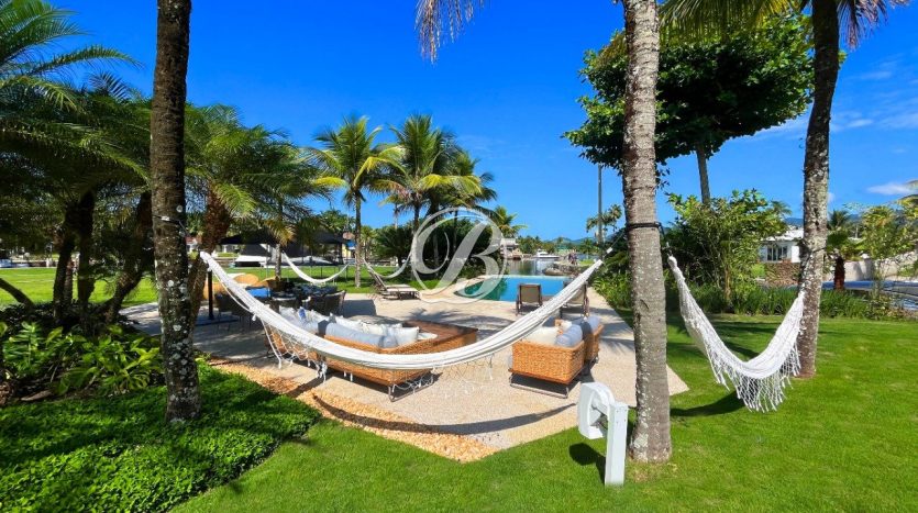 Residência de alto padrão com contemporânea arquitetura do renomado arquiteto Duda Porto. Destaque para a estrutura metálica fazendo o contorno de toda casa. Decoração esmerada e uma iluminação refinada sustentam a beleza da casa a noite ou de dia. No terraço panorâmico encontra-se a academia onde se aprecia o pico do frade, o movimento do canal, da marina e a mata atlântica. São 3.080 m² de jardins com spa, piscina aquecida, sauna, quadra de vôlei, cama elástica e ampla área verde para pouso de helicóptero.