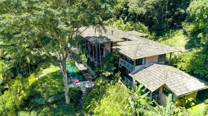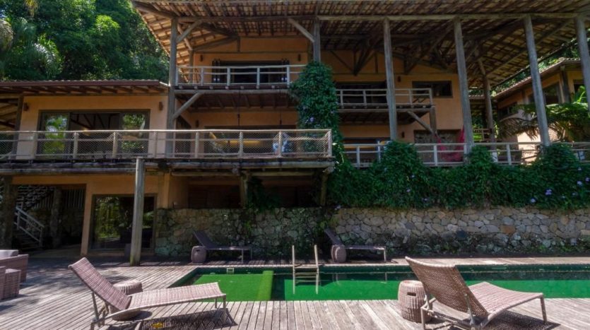 Casa ampla, cercada de verde com piscina adulto/infantil, com uma vista maravilhosa para o mar.