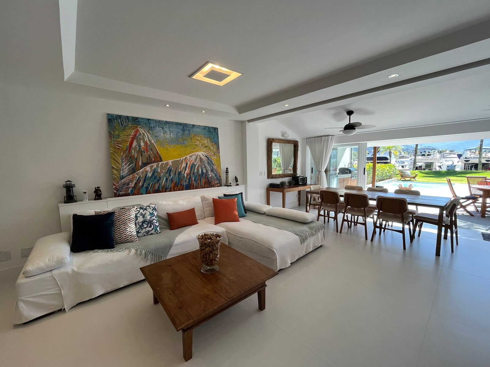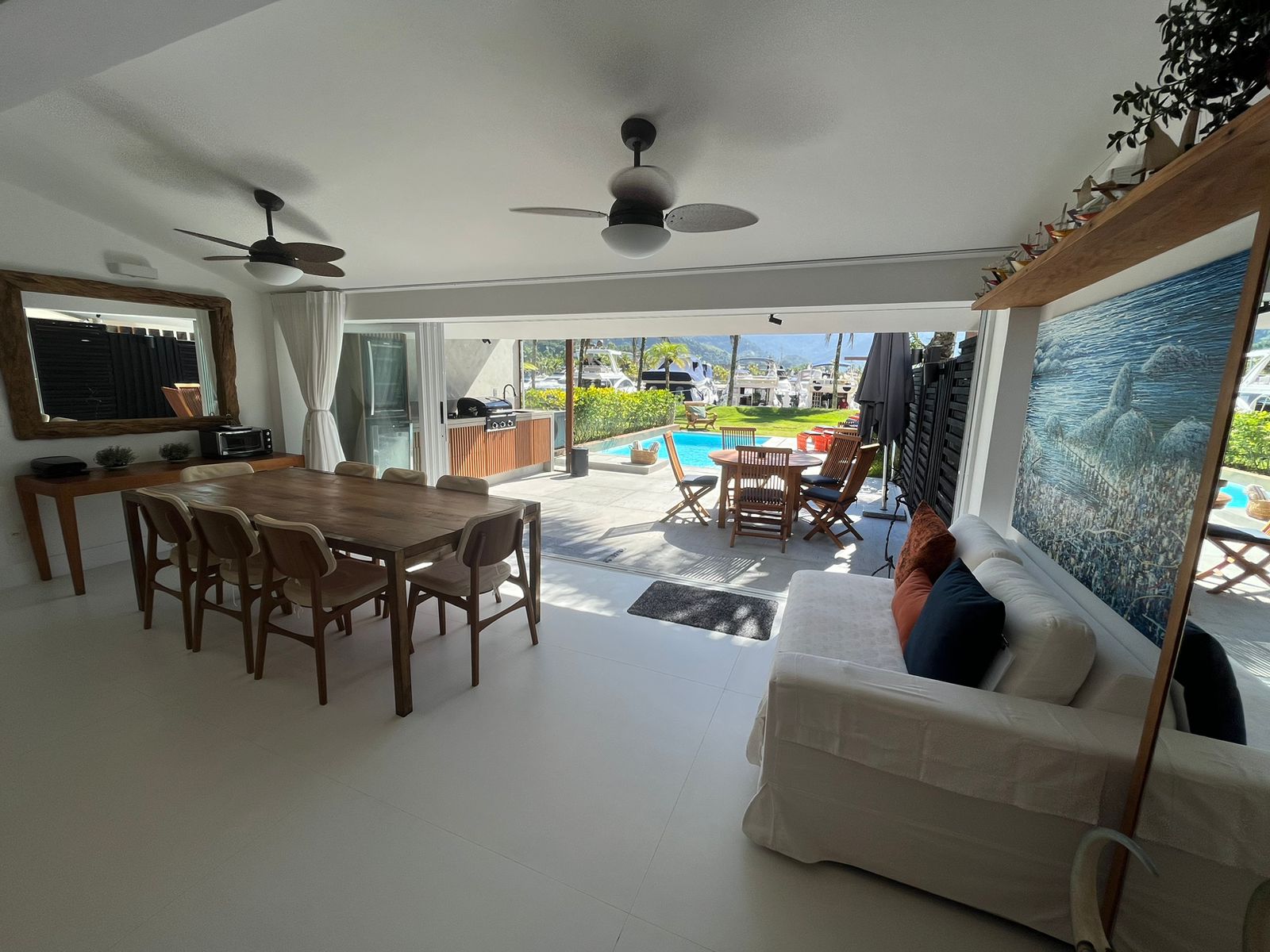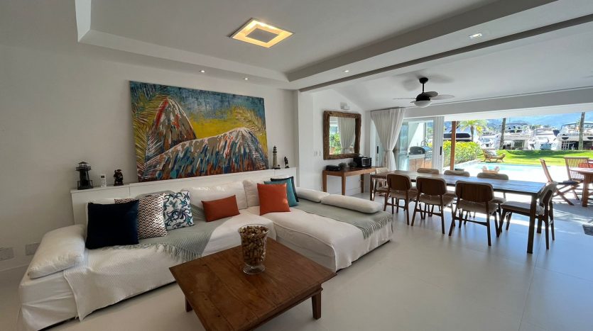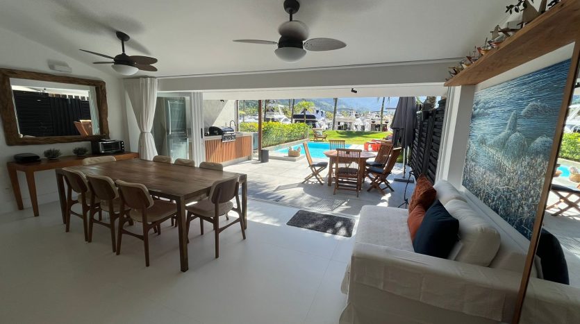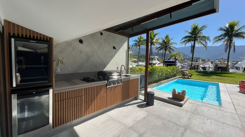 Casa em SubCondomínio com vista para a Marina Porto frade; decoração clean; comporta 08 pessoas confortavelmente. Cozinha bem equipada para o preparo doméstico. Piscina e área gourmet completa.