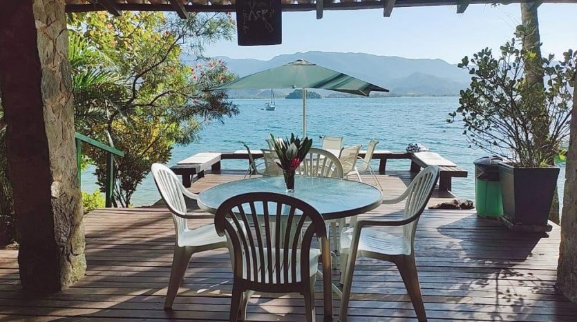 Praia particular com 60 metros de frente. Total da área 25.000 m2. Água de poço semi-artesiano e captação de chuva. Reservatórios com 45.000 litros. Dois geradores. Casa de caseiro, rampa coberta para lanchas de até 30 pés, guincho elétrico, casa de caseiro com dois quartos, casa de geradores.